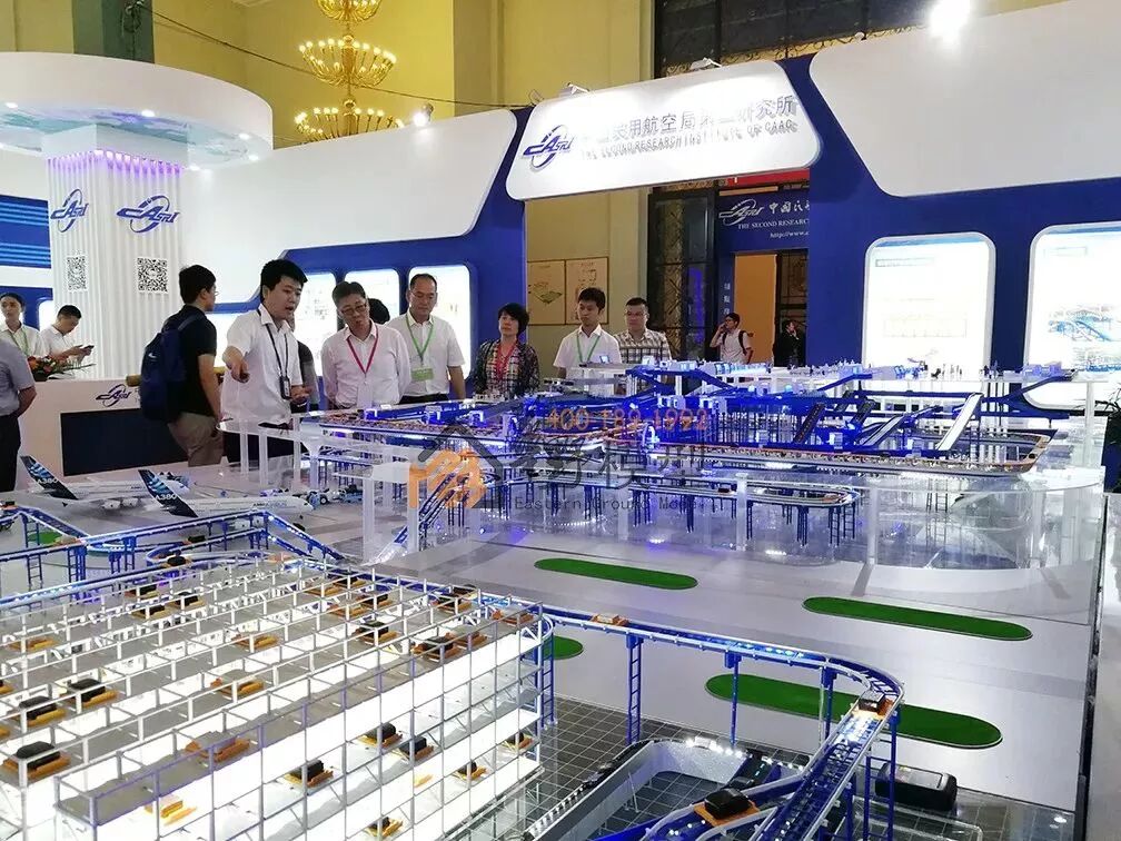 中国民航局第二研究所携手民航物流制作的机场行李系统模型亮相展会现场,期间,许多参展人员参加展会开幕仪式并参观了沙盘模型,现场氛围活跃,场面火爆。