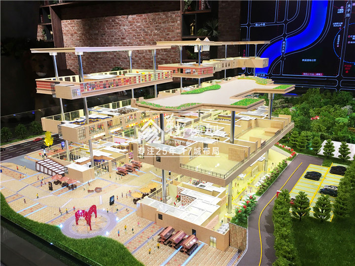 沙盘将商业内部结构根据图纸分隔,再布置与业态分布相对应的商业饰品,使商业氛围更为浓郁。商业中心采用电动机械式升降系统,商业体可层层分离、独立展示商业内部分布,又可层层合并还原商业体的真实外立面原貌及体量。