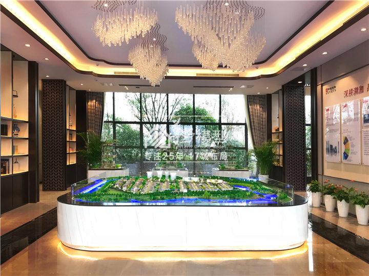 方正硬朗的沙盘外形设计搭配充满东方韵味的展厅