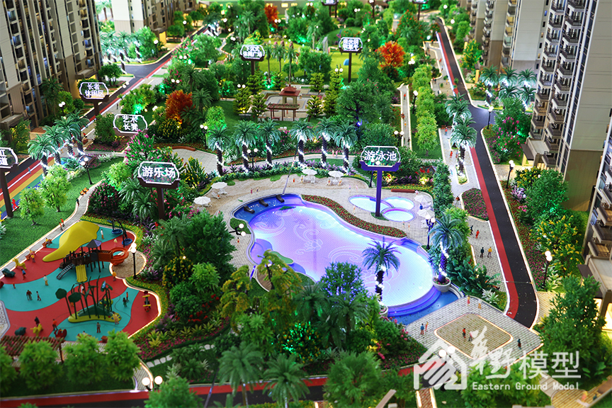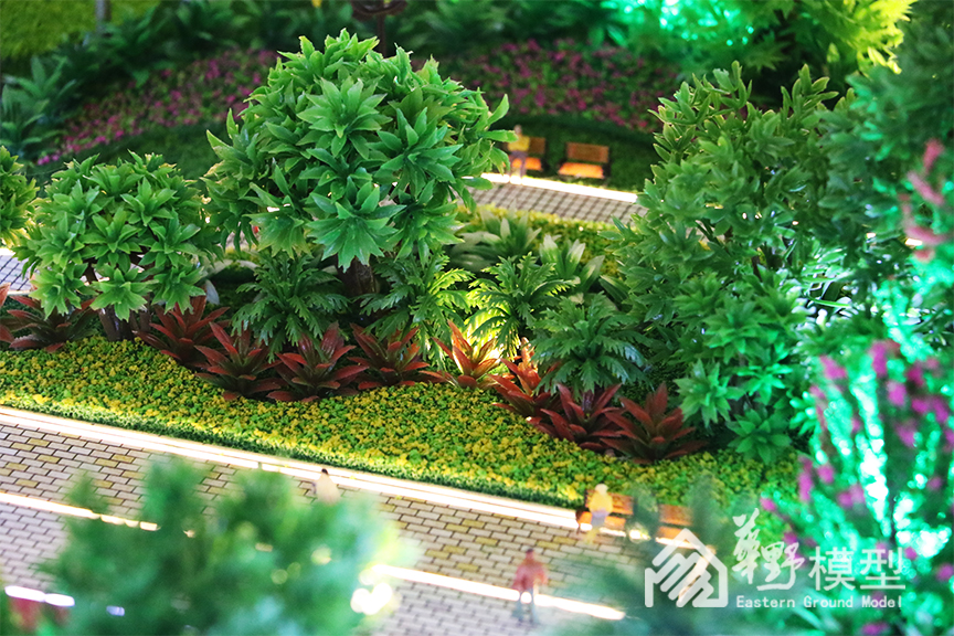 盛世华府小区中庭植被覆盖高,种类繁多,形态复杂。沙盘专门采用树脂凝造植被,较传统树种细节塑造更逼真,展现形态更多样,色泽细分更艳丽,层次搭配更和谐。