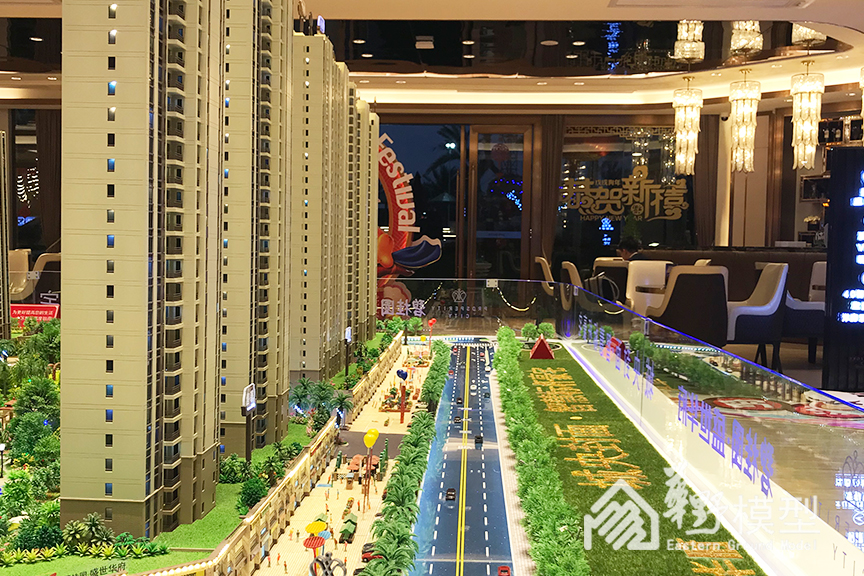对于住宅方面,沙盘楼盘采用3D立面精雕技术,每一处纹理,每一丝细节都得以还原。配合盛世华府一字楼设计,真实展现小区全局。