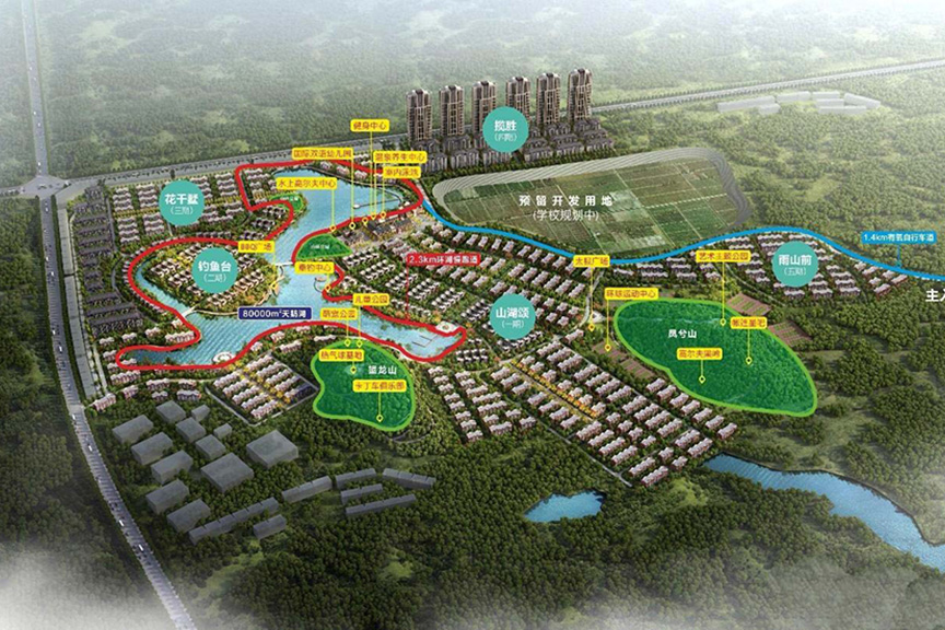 润达美墅项目位于江西宜春,总建筑面积65万㎡,规划总户数3083户,主打别墅洋房与高层住宅。项目内部具备一湖二山,十大公园。