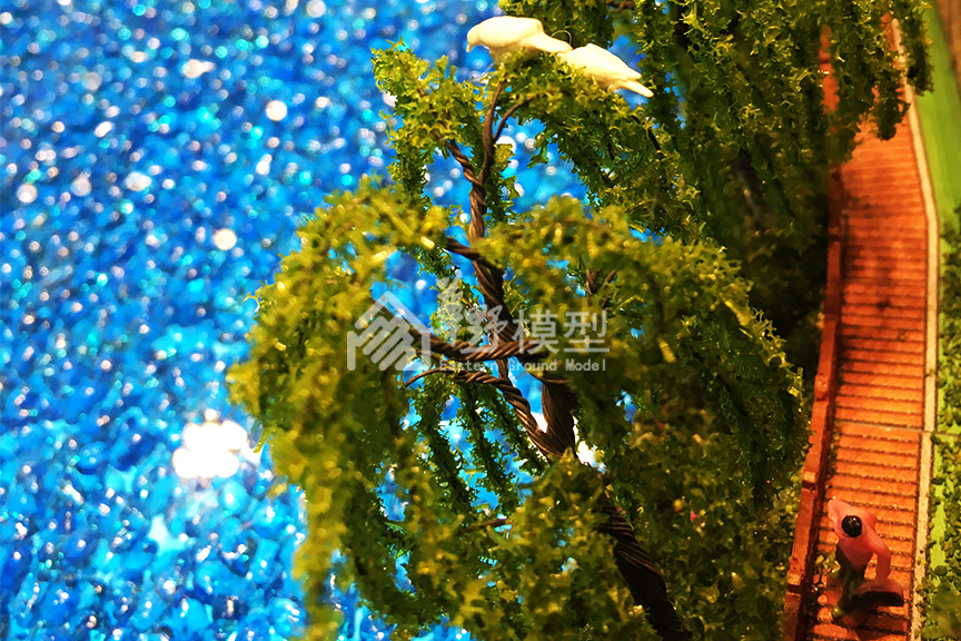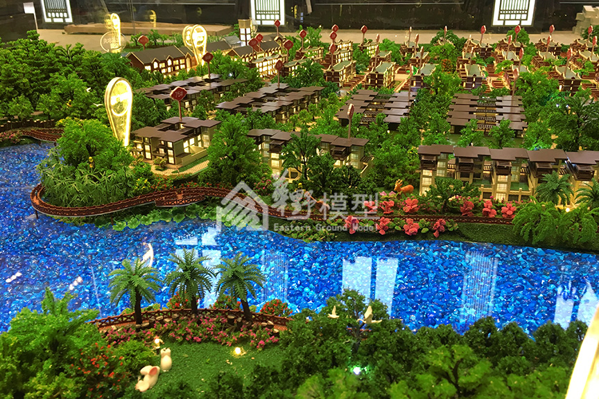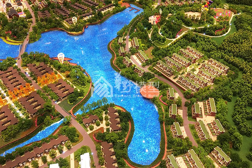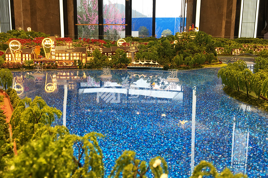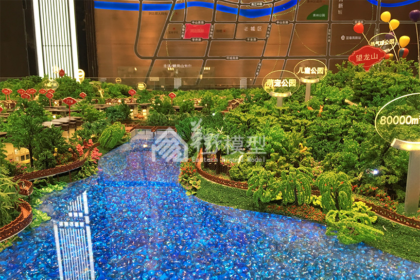 润达美墅定位高档社区,环境的重要性不言而喻。沙盘要如何体现出当地优美环境呢?