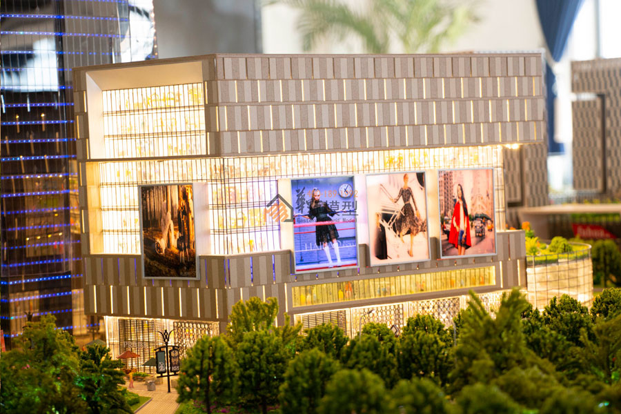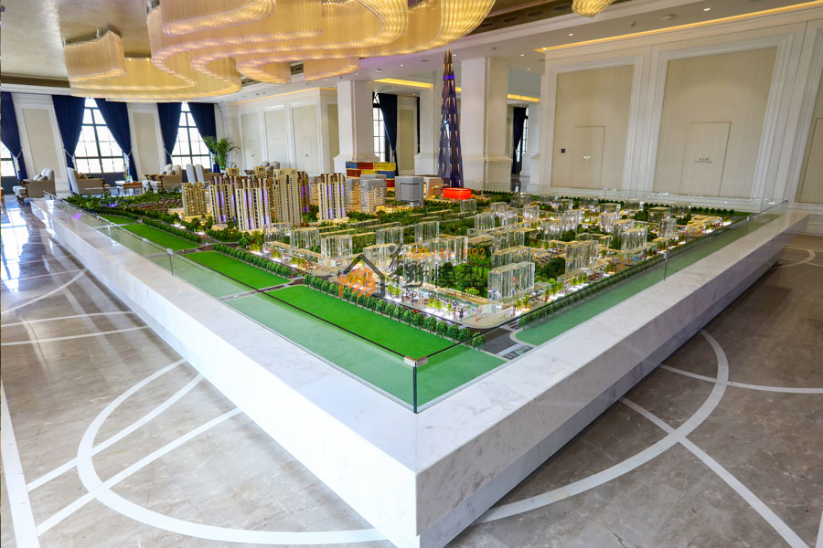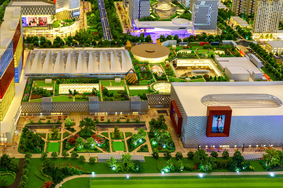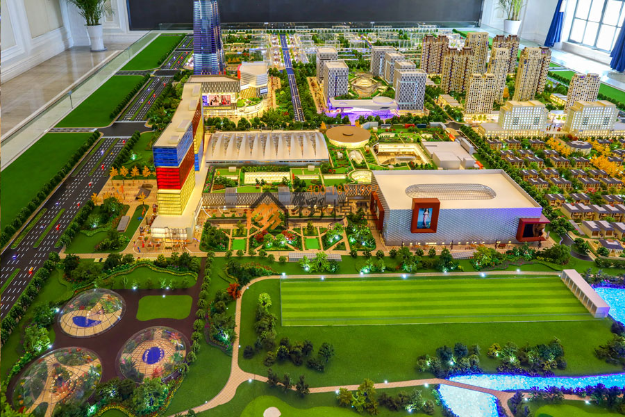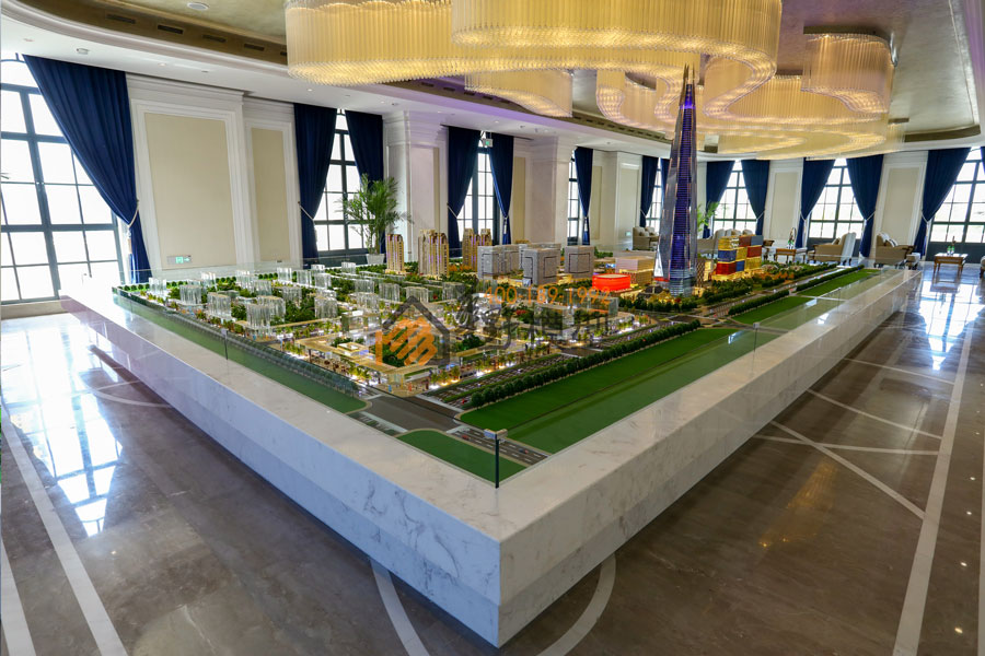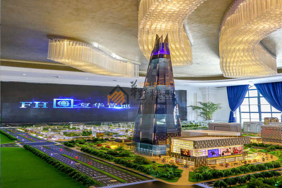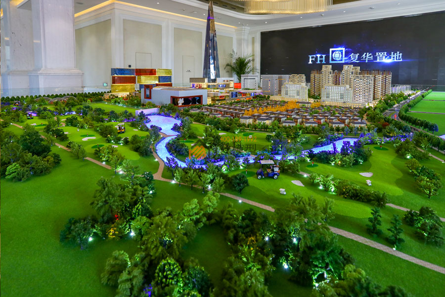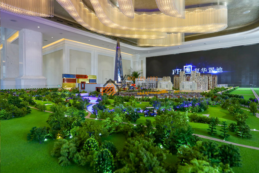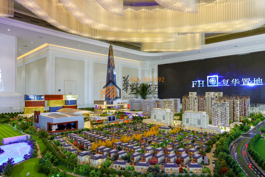 华野模型用沙盘展示了一个全球最大的复合商业项目,项目内部皆为全室内设计,包含:主题乐园、全景观水乐园、儿童乐园、电影乐园、千米水岸商街、国际精品酒店、复华国际金融中心、金融产业园等。