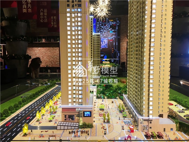 细看沙盘,三三两两的行人或进出广场,或自由漫步,热闹的时光在其中定格。