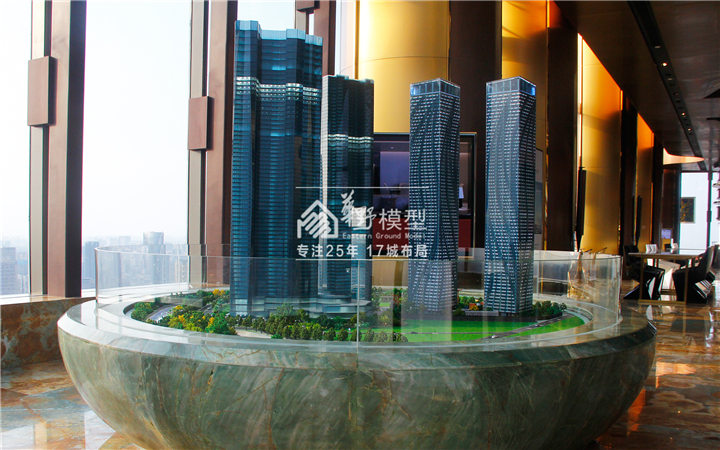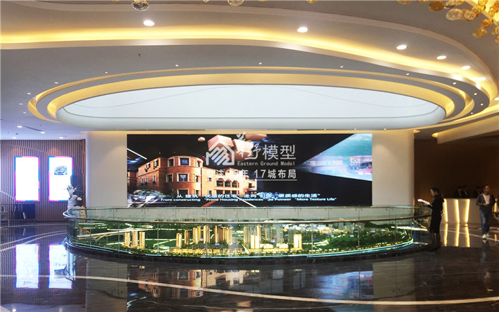 碧桂园·星荟大厦,模型采用玻璃围合技术与LED显示底座,立体展示与屏幕展示相结合。