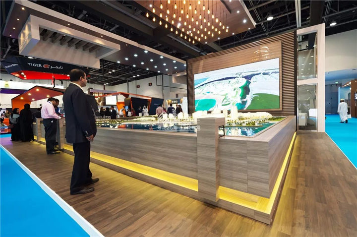 迪拜猎鹰城的圆角矩形、东坡印象·水街的展厅底座材料一体化、浪漫地中海的圆拱罗马柱等等,这些不同的构思与设计让沙盘底座与展厅氛围完美的融合在一起。