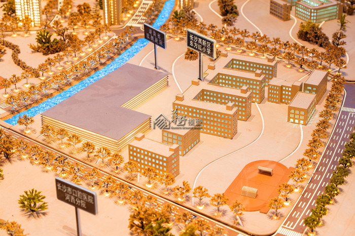 时代·梅溪领峰项目建筑以现代的简约风格,沙盘色彩摒弃固定绿色,整体采用暖黄色。