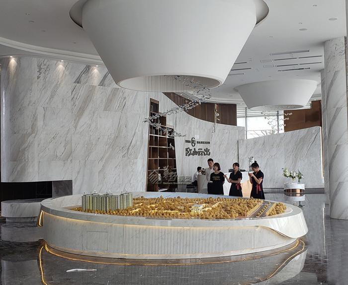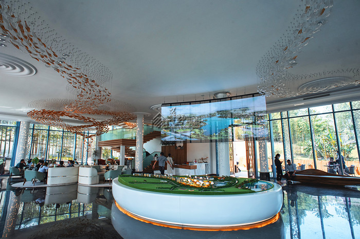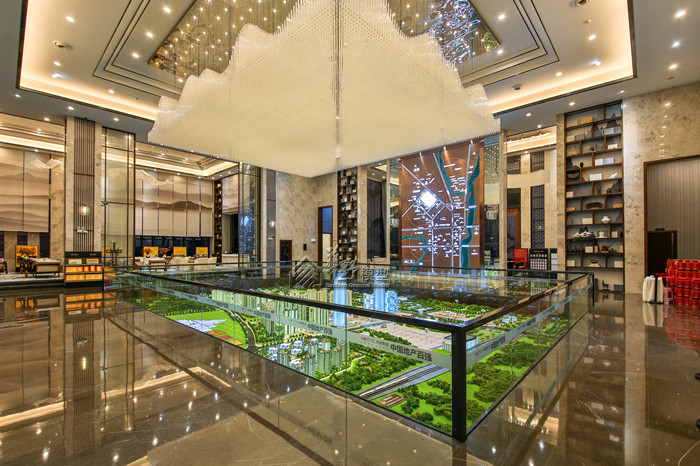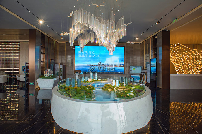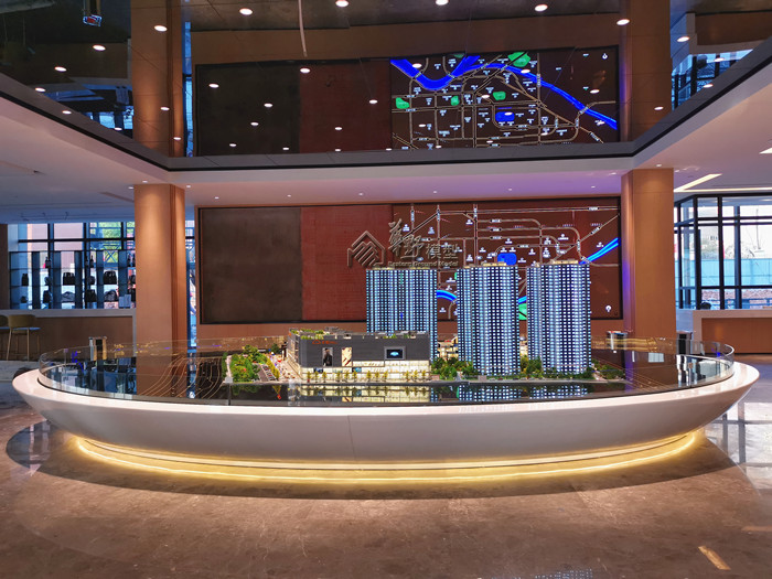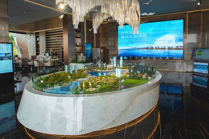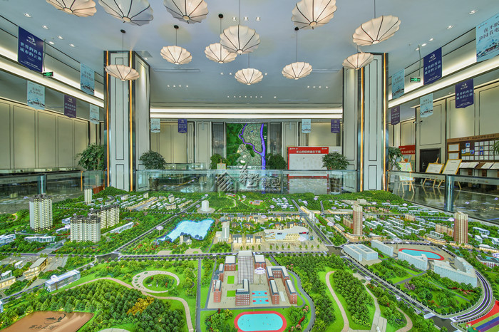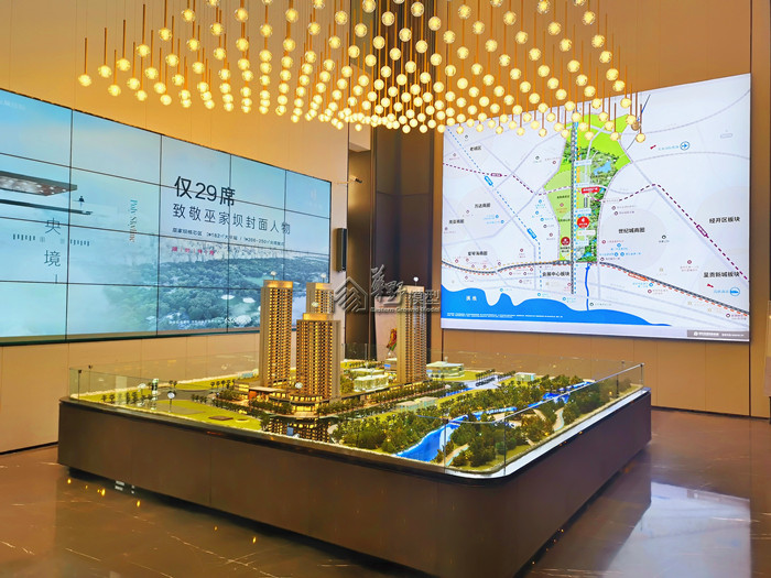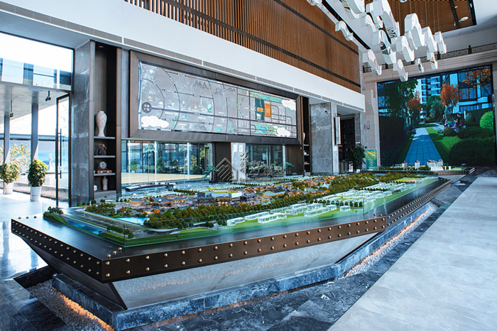 54平米大沙盘,建筑高低写实,灯光明暗有致,既有揽湖又拥有空中花园 ,绿色新生活,随时为你敞开。