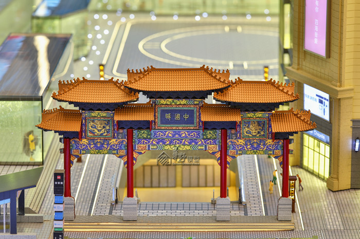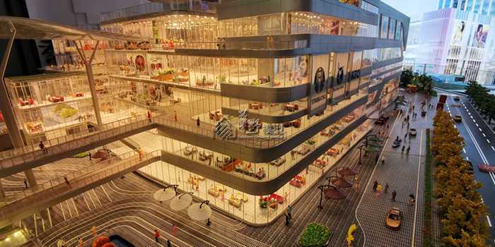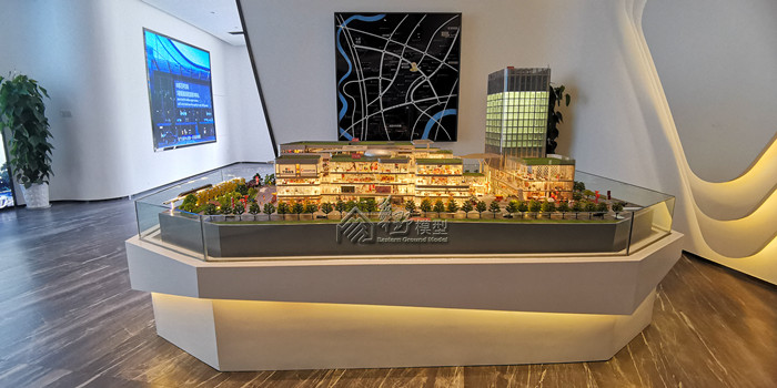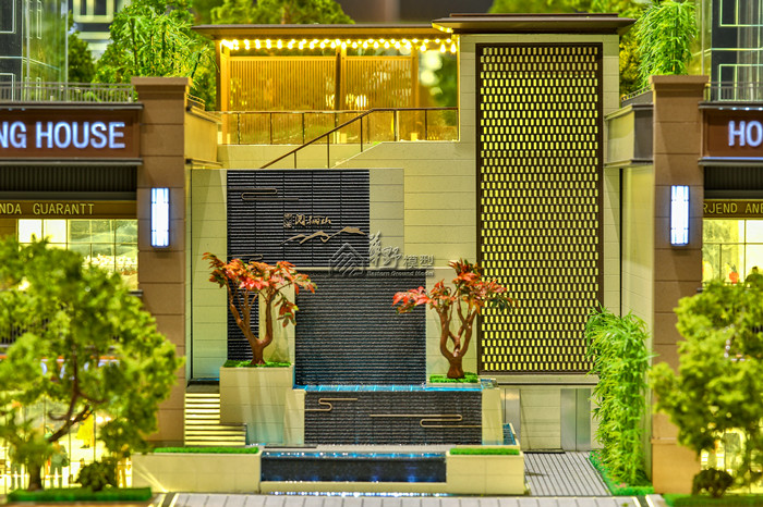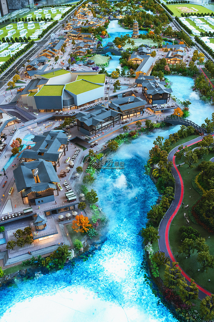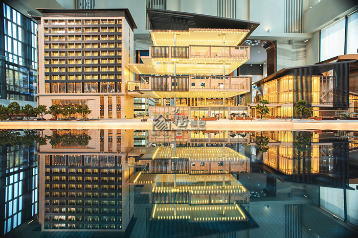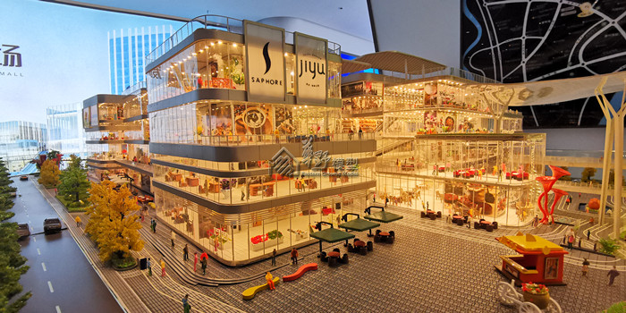 沙盘景观和建筑全部写实表现,通过丰富的小品和灯光来展现商业的繁华