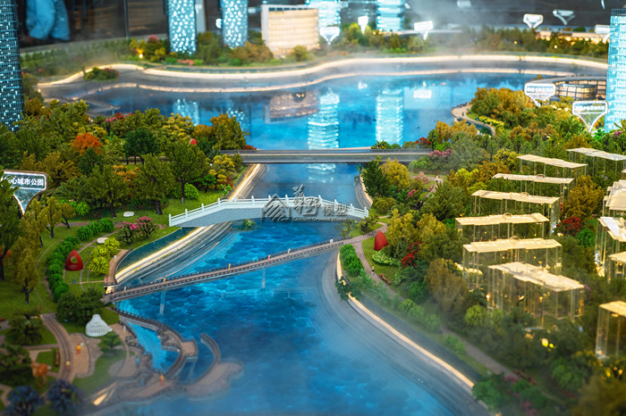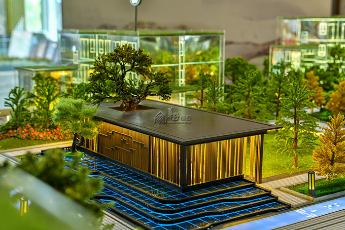 项目周边公园众多,环境优美,沙盘模型合理运用原木色系及实木材质写意园林景观,