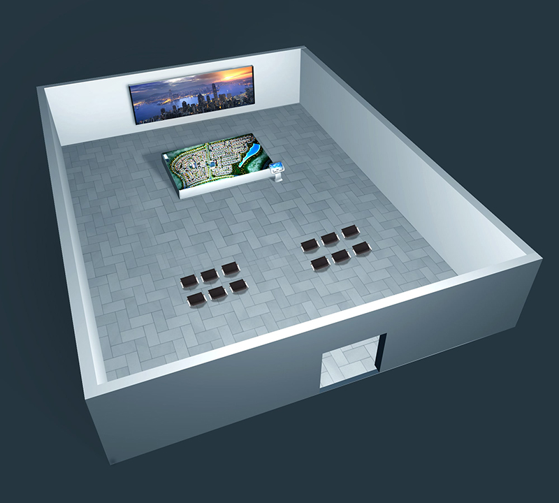 底盘设置是建筑沙盘模型制作初期必须要进行的一项工作。设置底盘的尺寸大小则在绘制图纸图纸阶段就已经完成,这里设置底盘是根据底盘图进行沙盘的地形地貌制作,制作建筑沙盘模型周边的环境,这里的环境则为一些点缀,无大面积的植被环境。所以设置底盘不仅要设置好地形地面环境,还需设置好灯光。让后期的对接工作更加的轻松便捷。