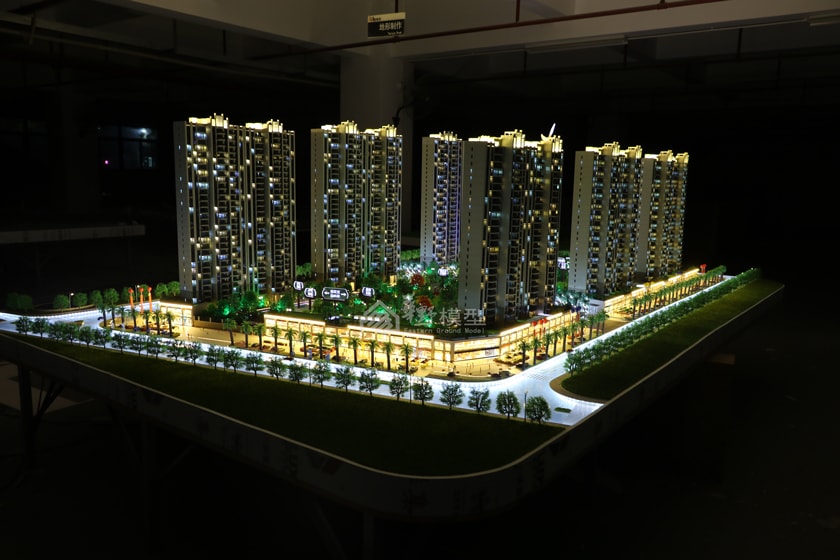 这个步骤是最为关键的一步,也是马上能进行预览全局的时刻,设置好地形地貌环境后,建筑模型与沙盘进行组合。连接好相关部件与灯光组件,这就完成了建筑沙盘模型的初始模样。后期只需要进行稍微的休整即可。