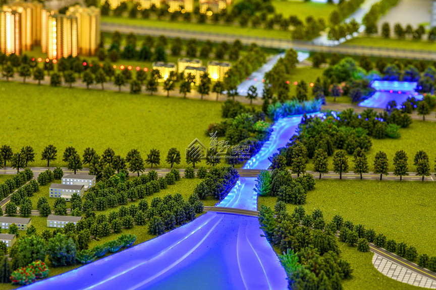 项目类型:住宅模型 项目简介:沙盘3D彩印铺装,景观写实,金属氟碳漆道路,斑马线及道路边缘均有泛灯,规划沙盘景观写实制作,水景海洋蓝水景石透光效果