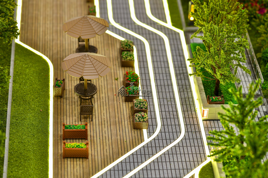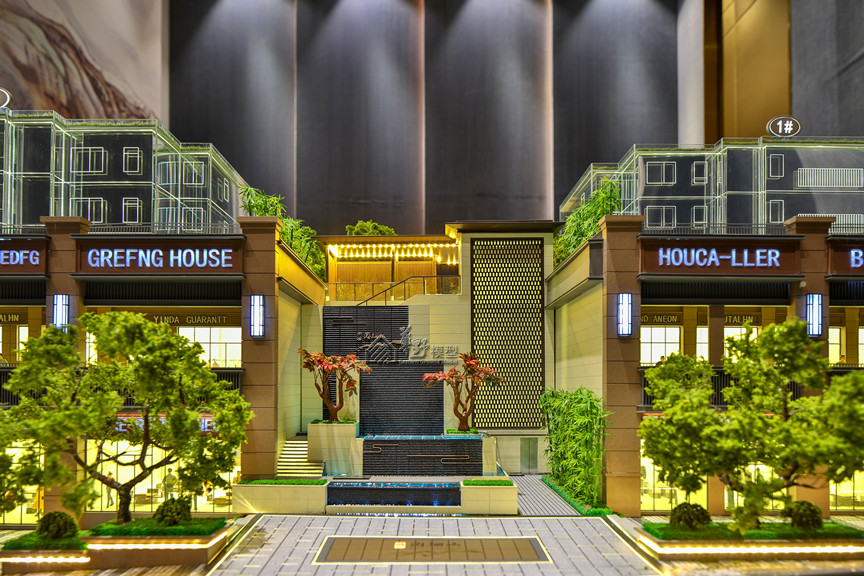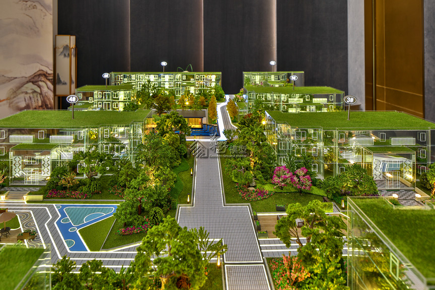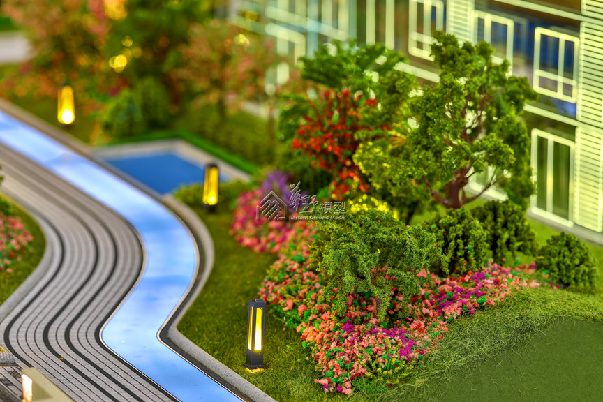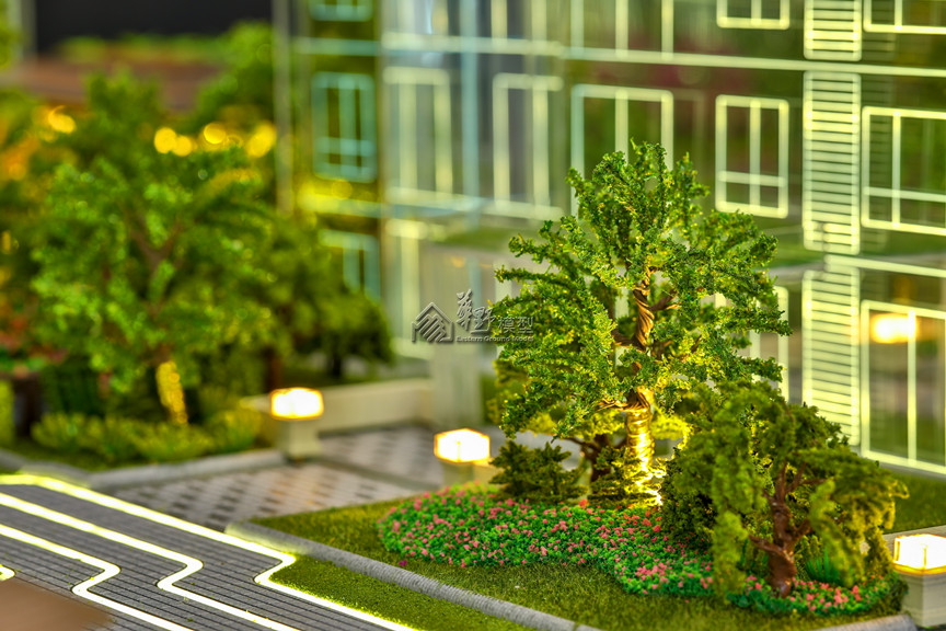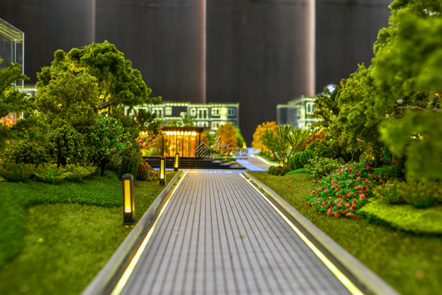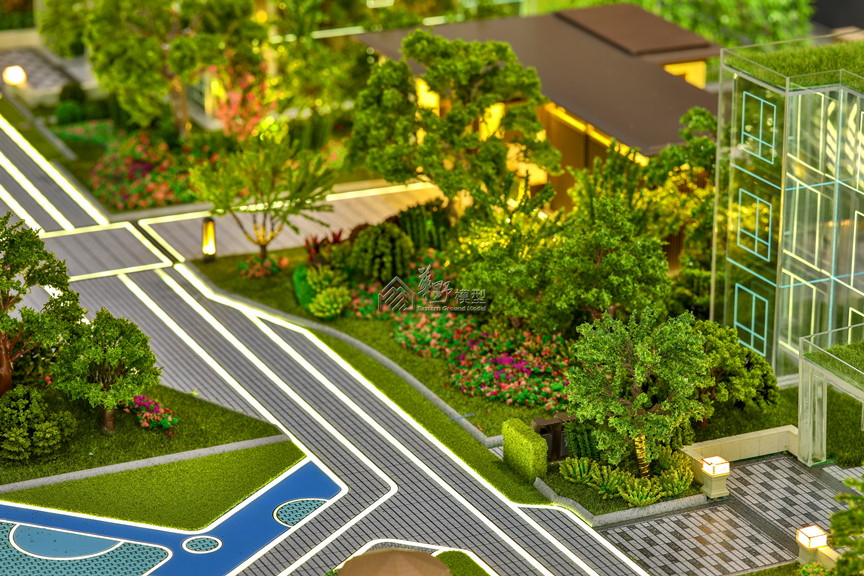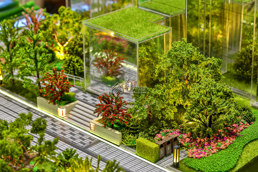 项目类型:住宅模型 项目简介:建筑采用水晶体表现,外围路面采用不锈钢制作,草坪采用多重静电植绒技术制作,树木采用超仿真铁丝树或真树干树种表现。