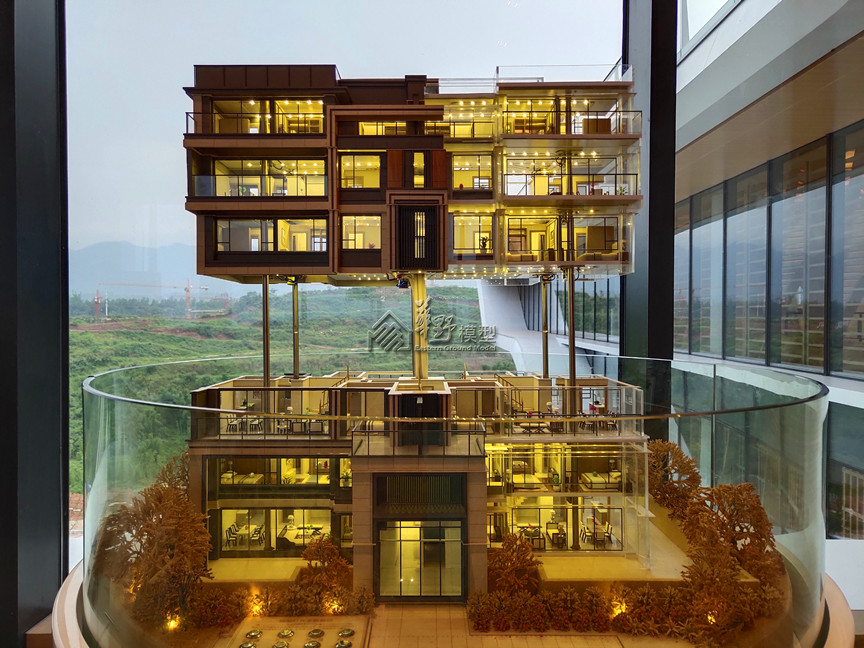 项目类型:住宅模型 项目简介:阳光城·悦江山,风靡再续,傲立新时代。沙盘整体写意表现,建筑暖色灯光效果,彰显的万家灯火意象。单体则采用半透明半写实形式,丰富而写实。