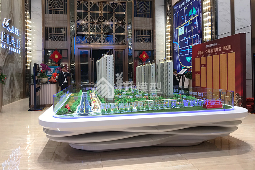 沙盘展厅整体风格经典方正,华野则选用交融叠拼式站台,以23块优质木,56道工序精工打磨制作,异型叠拼,层次丰富,于整个展厅起到了画龙点睛的效果。