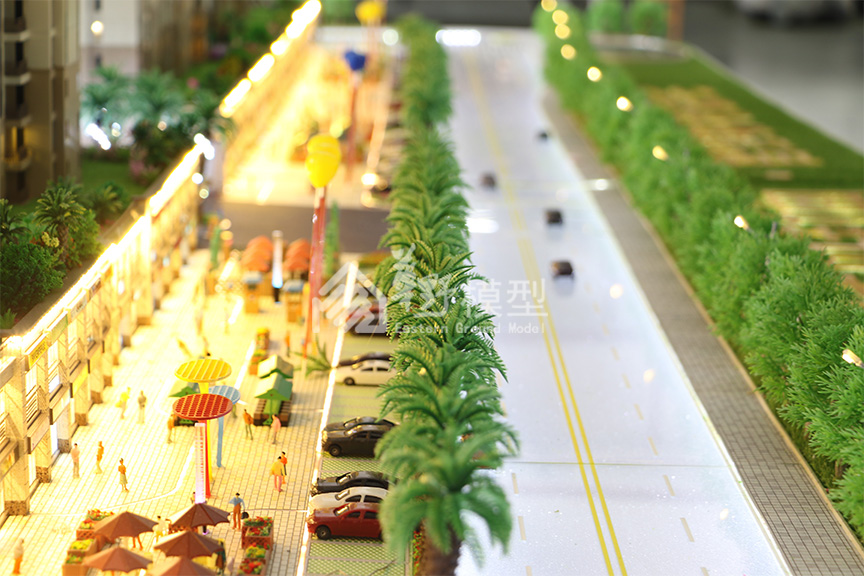 沙盘首次采用树脂凝造植被,较传统树种细节塑造更逼真,色泽细分更艳丽,层次搭配更和谐。同时道路精选华野第五代星空路网,镂空无缝拼接,多层镜透,立体度与整盘色相协调度大大提升。