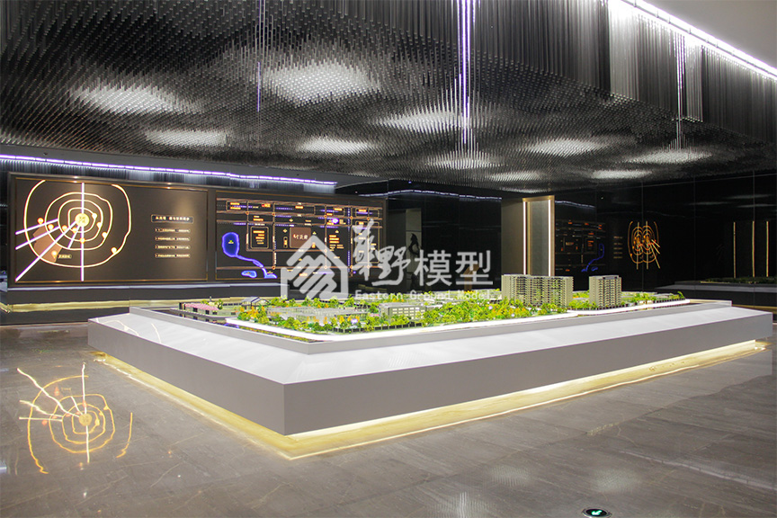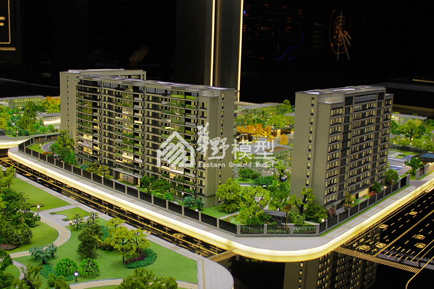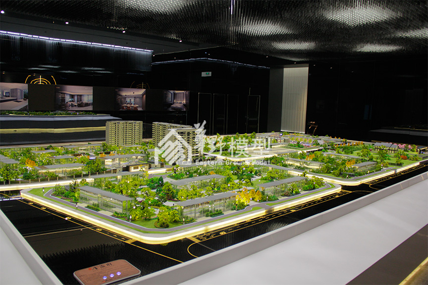 项目沙盘建筑采用写实与镜面体块相结合的方式,镀膜玻璃做磨砂处理,还原项目质感。