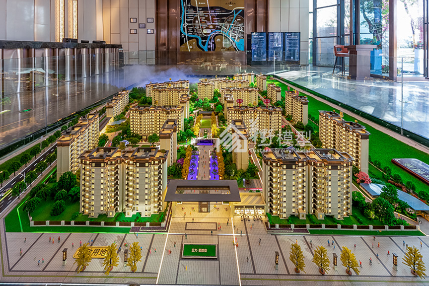 西昌交大·紫悦府项目沙盘模型由华野模型精心打造,恢弘大气,沙盘建筑运用了暖色调灯光,营造了家庭温馨的效果。景观方面铺砖采用了透光铺砖,周边有灯光点缀,园林绿化葱郁多样,园林小品丰富,细节处理到位。道路上有着流动的灯光,车水马龙尽在眼前,显示了项目本身交通便利的优势。 水系方面采用了真水与雾化相结合的效果,如梦如幻,另有珍珠石,起到了画龙点睛的效果。