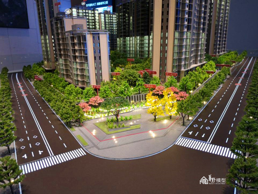 项目简介:沙盘采用真马皮草皮,景观按照图纸一一对照着制作,完全按照现场的布置来栽种,建筑采用全写实的建筑,层层亮的灯光,铺砖颜色和样式也是按照现场来还原。