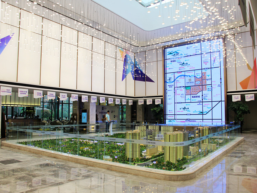 项目简介:建筑:建筑采用暖色灯光整体通体亮光表现.水晶底部透光。 5号地块商业灯光做跳。做一块显示屏。制作2号3号4号5号地块。建筑写实制作. 景观:1.铺装采用3D打印,环境底部透光。慢跑道灯光跑动。2.公园采用雾化效果。(又原沙盘)3.铺装底部透光。4.中间水景采用透光石制作。5.沙盘控制系统又原沙盘。表现地铁采用透明方式。
