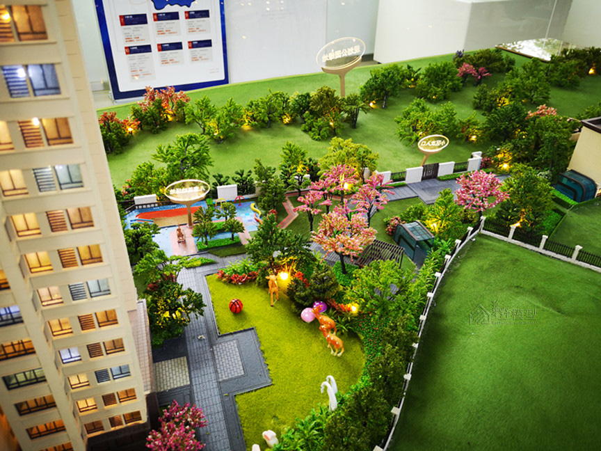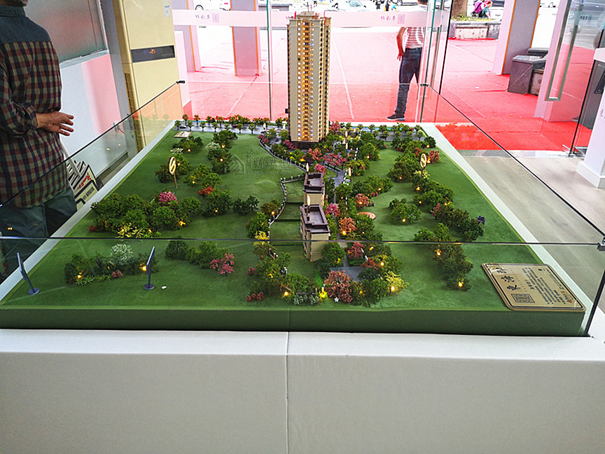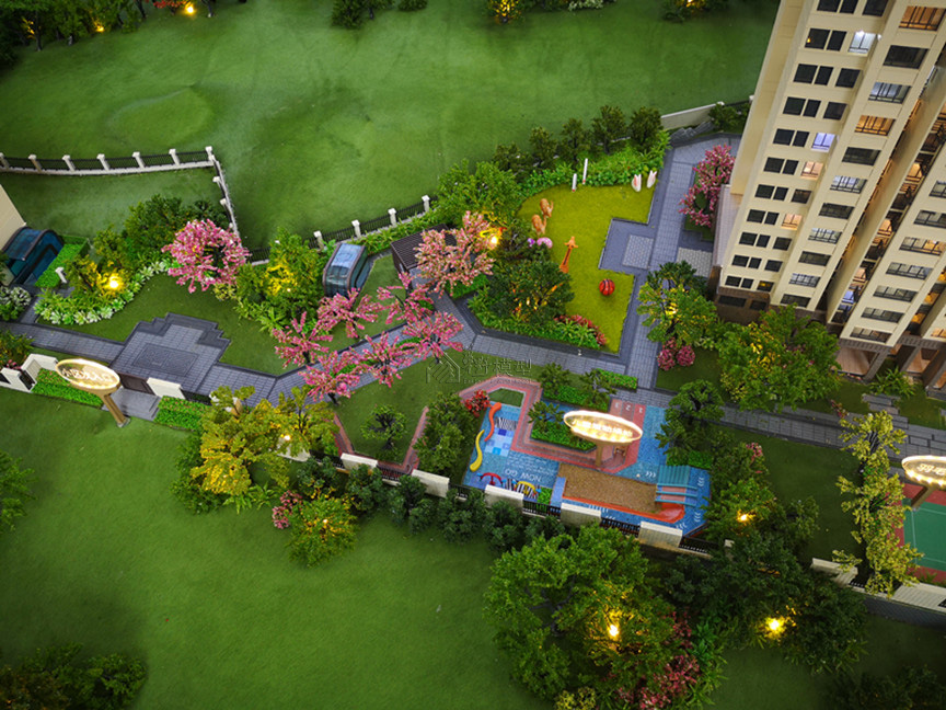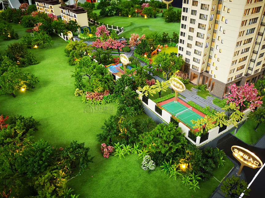 项目简介:沙盘为真马皮草皮,道路采用氟碳漆喷漆底部透光技术,水面采用蓝宝石底部透光技术。建筑采用写实表现。沙盘整个为灰色调铺砖的表现方式。