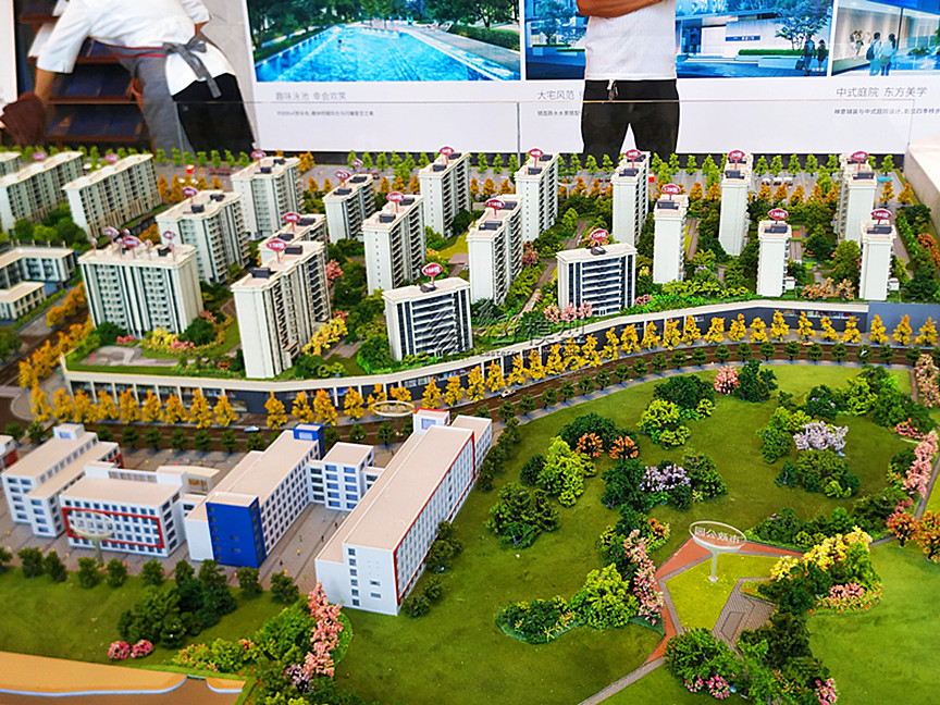 全部写实,重点表现交通、教育、生活配套、公园,古镇建筑采用水晶体表现。