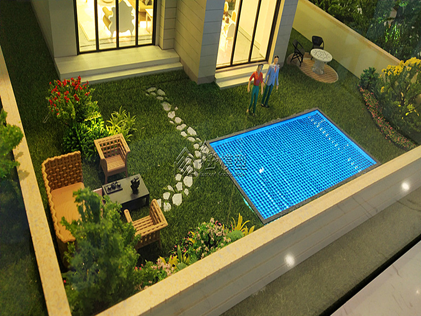 景观:铺砖3D打印暗藏灯光,道路采用动态灯光。水系底部透光制作,跑道动态灯光。采用写实制作,五重景观效果,小品丰富按甲方效果图制作,楼间距拉宽处理,水系采用水钻透光制作,道路不锈钢切割制作。