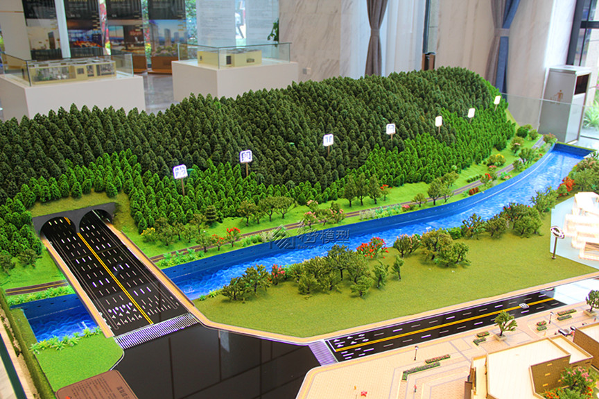 建筑:一期建筑写实制作共计6单元,整体商业及大门写实,其他建筑采用全新透光镜面玻璃+亚克力制作(含一期建筑合计31单元)高层住宅液晶玻璃通体灯光,商业(暖色灯光) 景观:3D打印铺装,真皮马毛草坪,道路采用黑色钢化玻璃,鹿溪河真水(透光海洋石)+雾化,龙泉山脉雾化系统(沙盘下有自来水管) 户型:雷达感应灯光