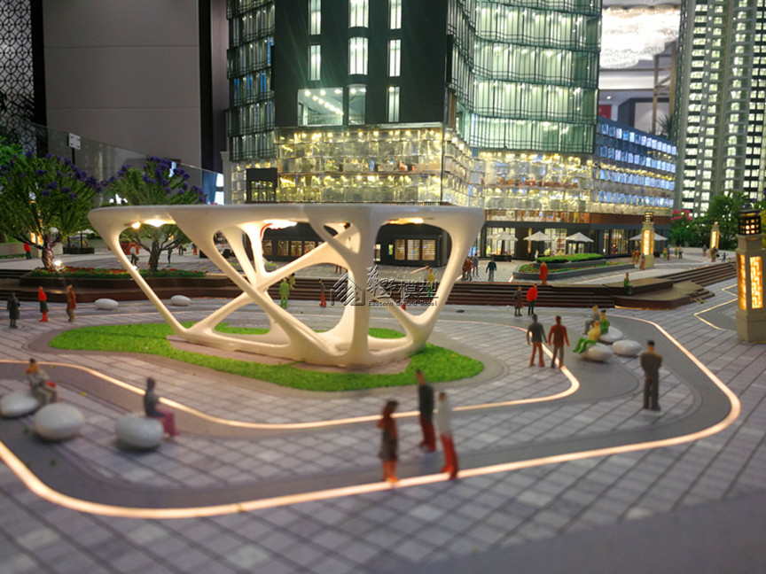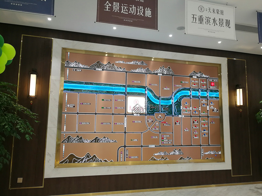 建筑:建筑采用层层亮灯表现,内饰银箔效果;酒店采用分格变化亮灯表现。商业建筑和地灯要丰富,商业墙体灯光和广告灯箱。所有楼牌号亮灯制作。 景观:写实表现,道路采用不锈钢制作。河流采用透光石透光表现。 户型:模型平层4套,外墙写实,带灯光和电视,风格待定。 区域:采用拉丝铝板制作,配套亮灯表现。 底座:沙盘底座和户型底座采用爵士白烤漆底座制作。