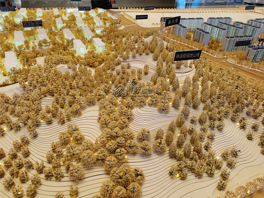 项目类型:住宅模型 项目简介: 沙盘GB地块项目建筑写实表现,其中B地块暂由体块代替,景观艺术制作,周边空地根据地形高差,采用3D打印基础框架,表面贴实木线条,线条之间透光体现。