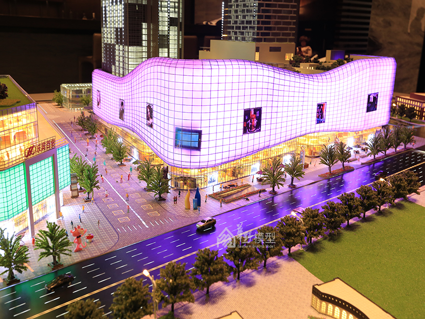 项目景观采用3d彩喷,景观所有灯光全部隐埋式,建筑玻璃木墙为最新贴膜灰色玻璃,大型商场建筑是3d打印,建筑灯光软件编程。