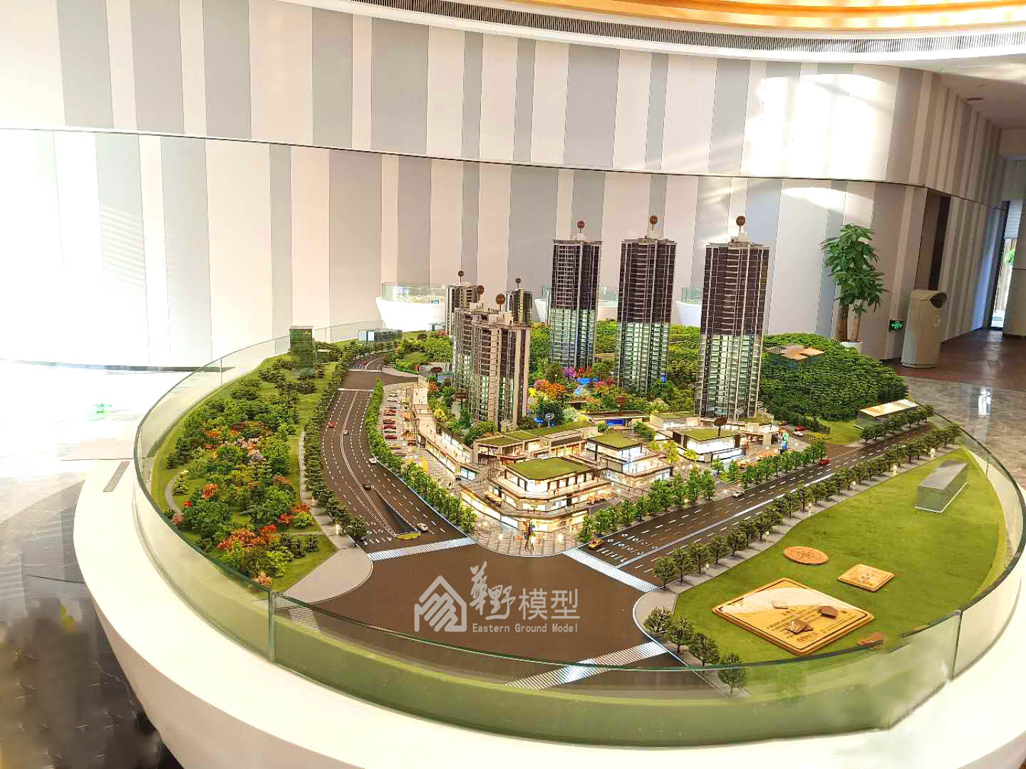项目简介:沙盘采用灰色调色系,搭配真马匹草皮。氟碳漆喷漆马路底部透光,写实的商业和住宅表现,住宅灯光采用层层亮的表现方式。圆形的沙盘配上白色高光喷漆的底座,尽显高端。