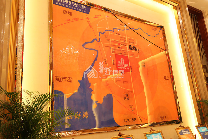 项目所属兴隆台区南部,东至向海大道(双兴南路),西邻泰山路,南靠盛世街,北接友谊街,周边交通四通八达;(激光笔示意)我们现在的位置是位于项目北侧的接待中心。盘锦市“十二五”规划中强调,城市建设向南向海发展的大方向。而盘锦万达广场正处于城市发展的中轴线!项目拥有盘锦市最好的商业、教育、居注生活资源。