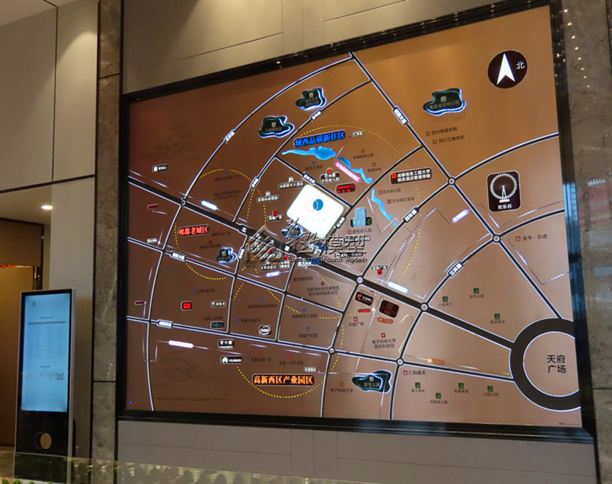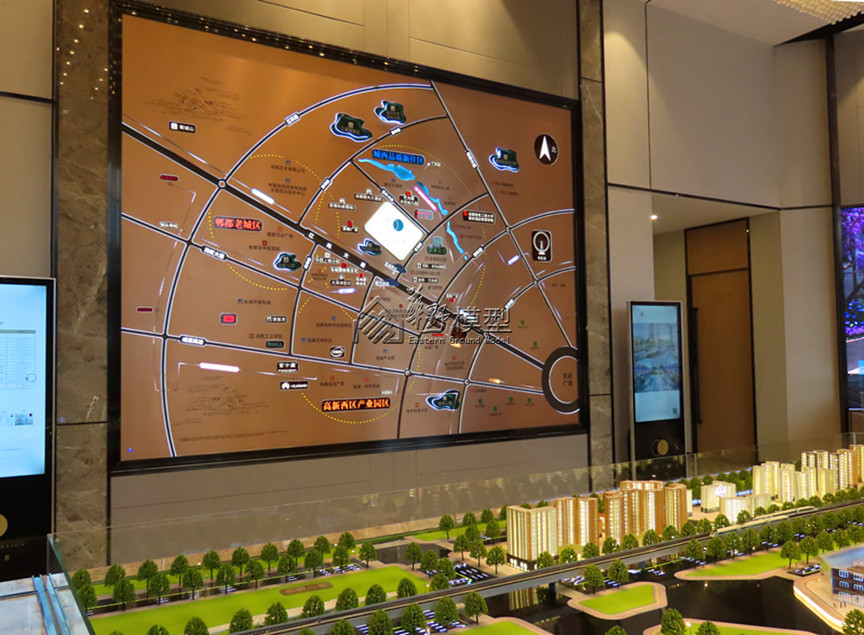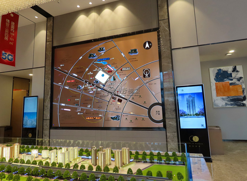 建筑:本案住宅建筑全写实,采用整体通透灯光、内贴银箔纸选房智控系统:本案3个单元;控制本案建筑每栋每层、实现人员交互;实现小区的功能配套区域控制;控制沙盘周边配套,交通,重要配套;采用21寸触摸屏。 景观:透光抬升,约2公分,3D打印、暗藏灯光 户型:户型2套,写实制作 区域:采用拉丝铝板,公园绿地采用有机玻璃透光