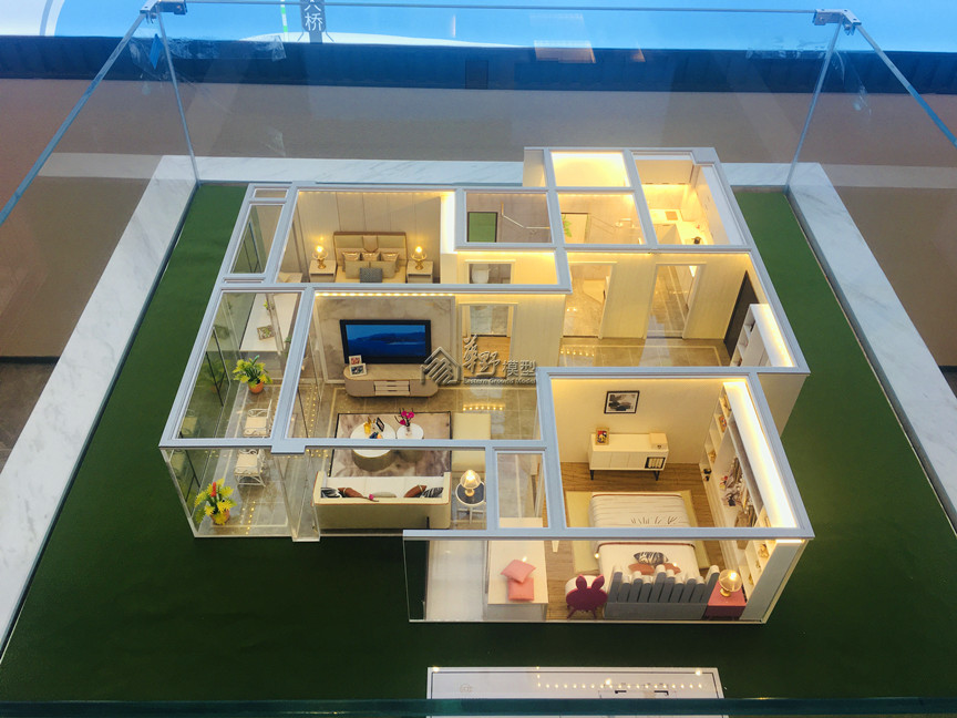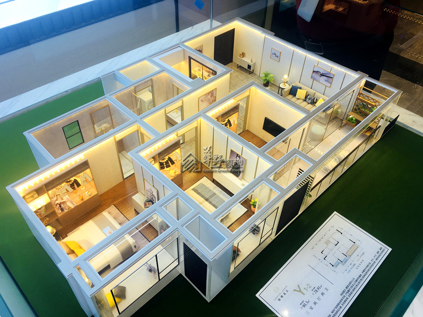 沙盘建筑全写实表现,为销售的建筑采用镜面玻璃透光体现,景观全部写实体现,江面LED屏制作。