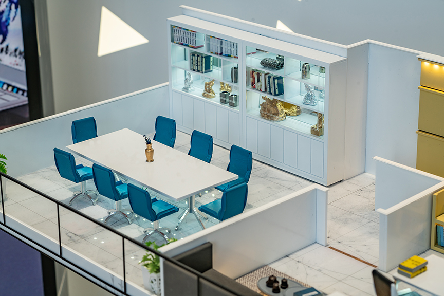 项目简介:此次模型为现代化办公户型模型,主要展现的是办公室的布置,模型真实还原了项目原本面貌,整齐划一的办公桌、休息区、办公电脑,精致的书架。思普瑞置业此次携手阿里巴巴集团致力于打造西安共享智慧生态办公区,项目打造以生态、共享、智慧三个核心办公生活理念,是一个全面实现智慧化的园区,将传统的建筑升级为智慧建筑,将不再是钢筋混凝土冷冰冰的物质体,而是一个具备感知的、自我生长的智慧生命体。思普瑞钛茂项目致力于打造共享、智慧、生态办公区,规划为办公、loft公寓、平层公寓。项目位置优越,利用大数据、人工智能等核心科技,社区智慧能非常高,非常适合年轻人居住、办公。