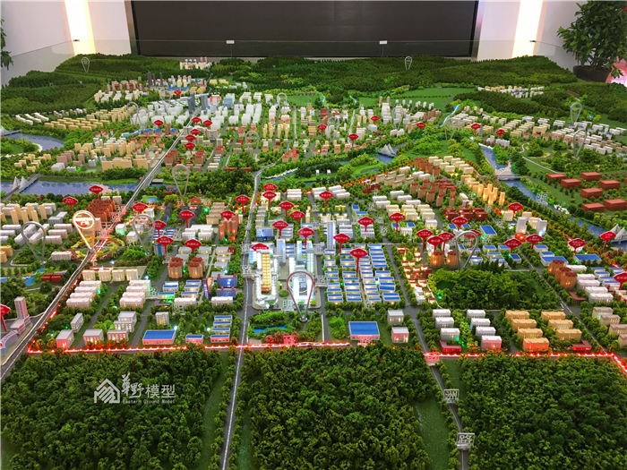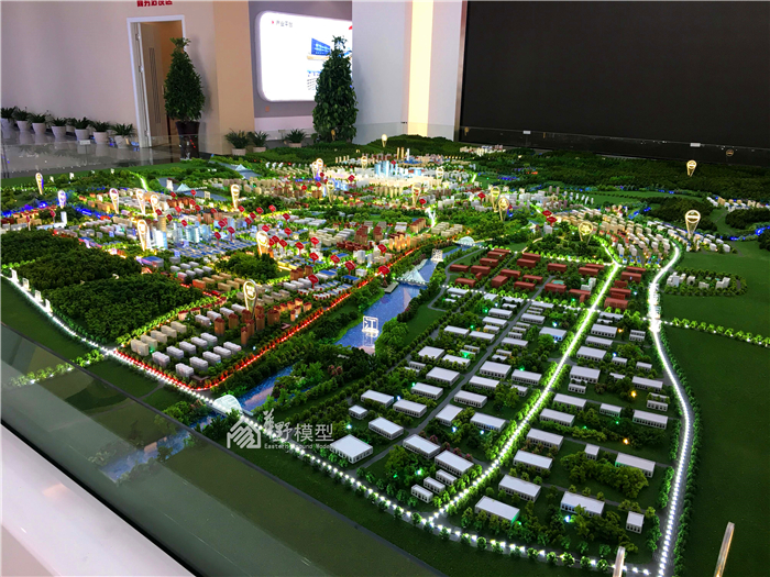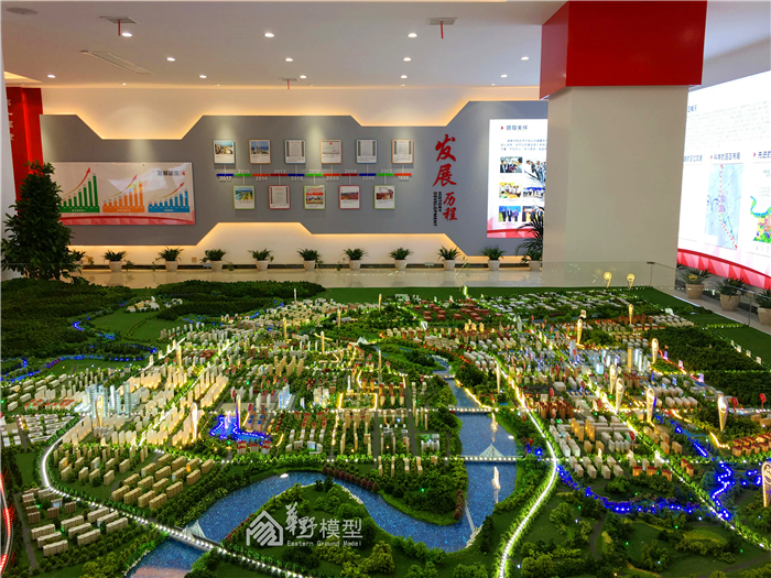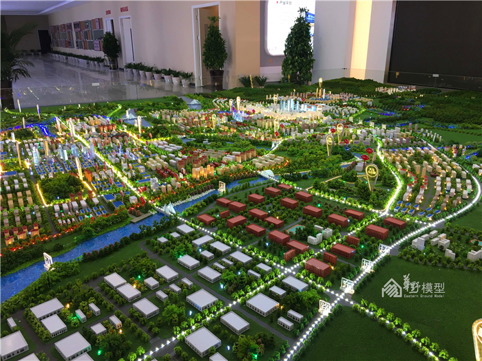 项目介绍:制作时采用全写实工艺,采用ABS板、透明玻璃、镀膜体块等材质,结合暖黄色、白色灯源,以错落有致的建筑高差形式,体现工业、人居、现代城市的三位一体建设性质。建筑以蓝、灰色调体现工业的井然有序,以白色透光镀膜体块展现城市经融的现代节奏感及时尚感,以暖色灯光反应住宅区的温馨和祥和。