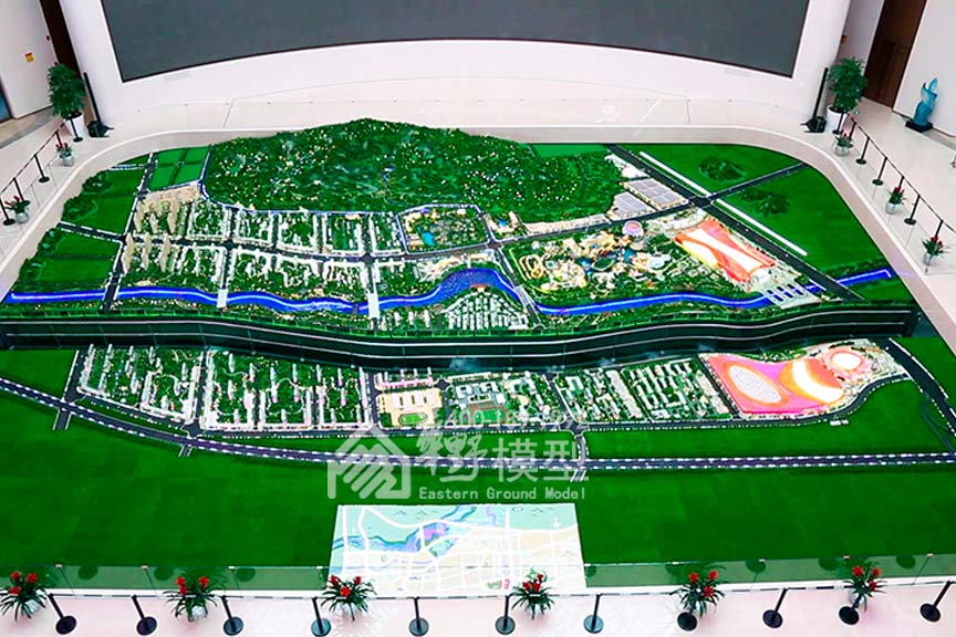 济南万达城位于济南市历城区,西邻莲花山、东临绕城高速、南至旅游路,北至经十路,有韩仓河南北穿流。总投资630亿元,项目占地250公顷,建筑面积530万平方米,此沙盘模型耗时4个月,济南万达城项目沙盘模型,通过智能为先,动态为先的设计原则,破解了静态模型表现力不足的问题。